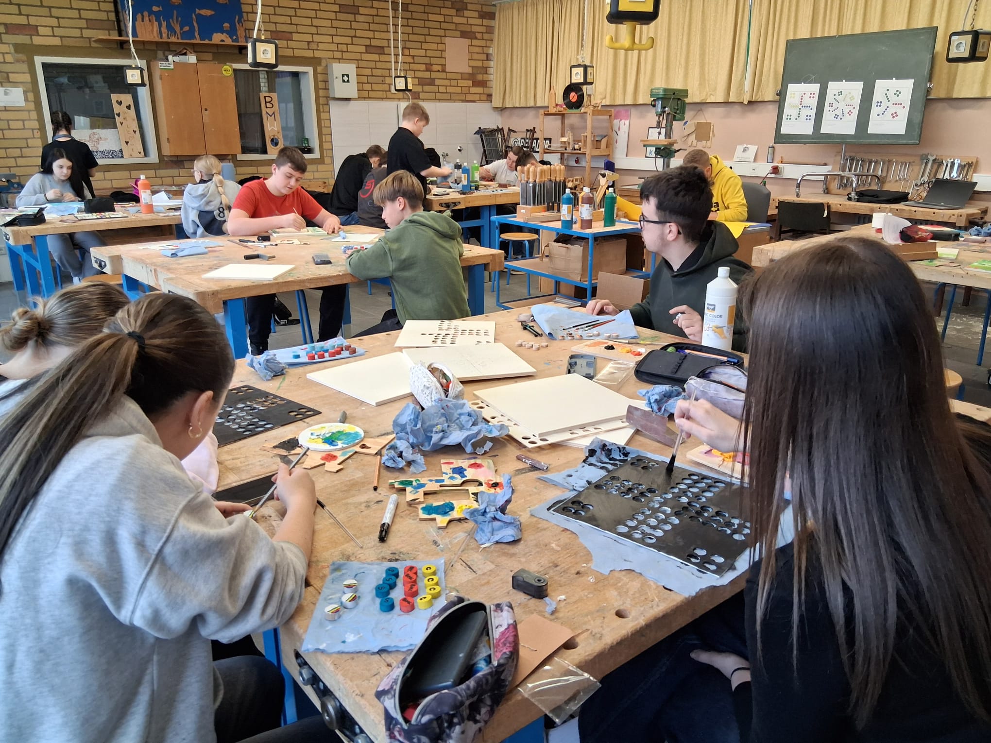 Am Freitag präsentierten wir unsere fertigen Kunstwerke in der Schule. Zusätzlich gestalteten wir Plakate für den Tag der offenen Tür und bereiteten alles für die Präsentation vor.